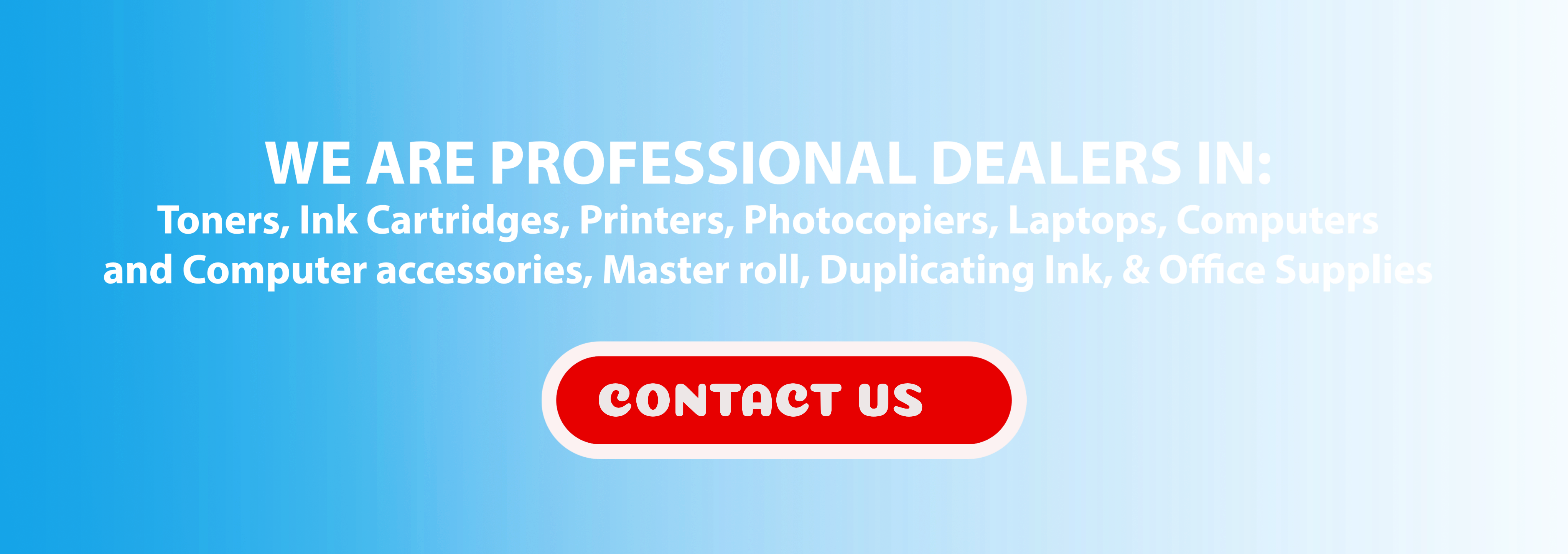 We supply Toners, Ink Cartridges, Printers, Photocopiers, Laptops, Computers and Computer accessories, Master roll, Duplicating Ink, & Office Supplies etc.